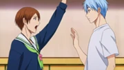 | Riko se asusta por la repentina aparicion de Kuroko |